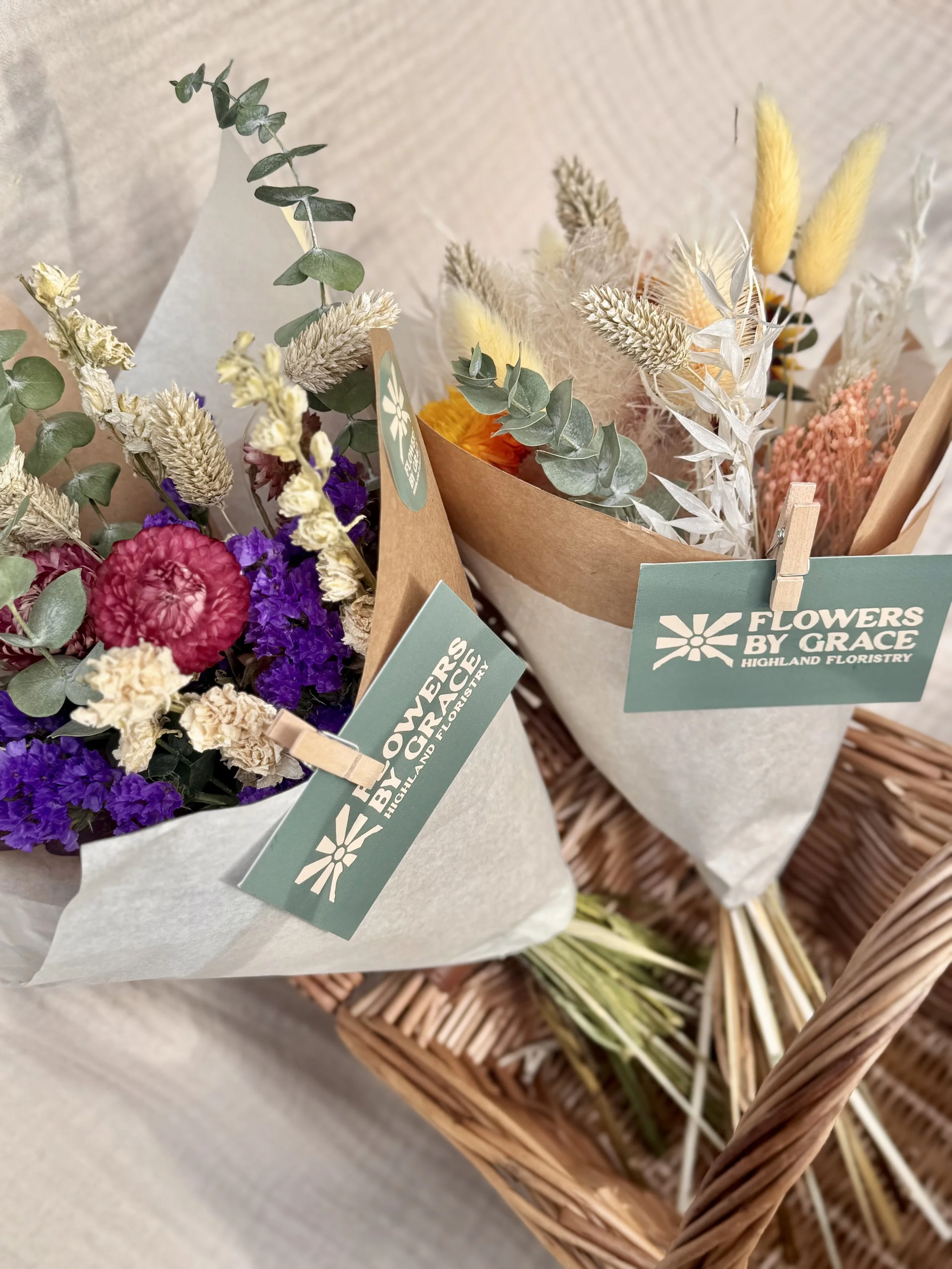 My everlasting dried flower arrangements are designed to last. Made with naturally dried blooms and foliage, they’re perfect for gifting or for long-lasting home décor. From wreaths, to bouquets, and flower crowns lets discuss your custom design.